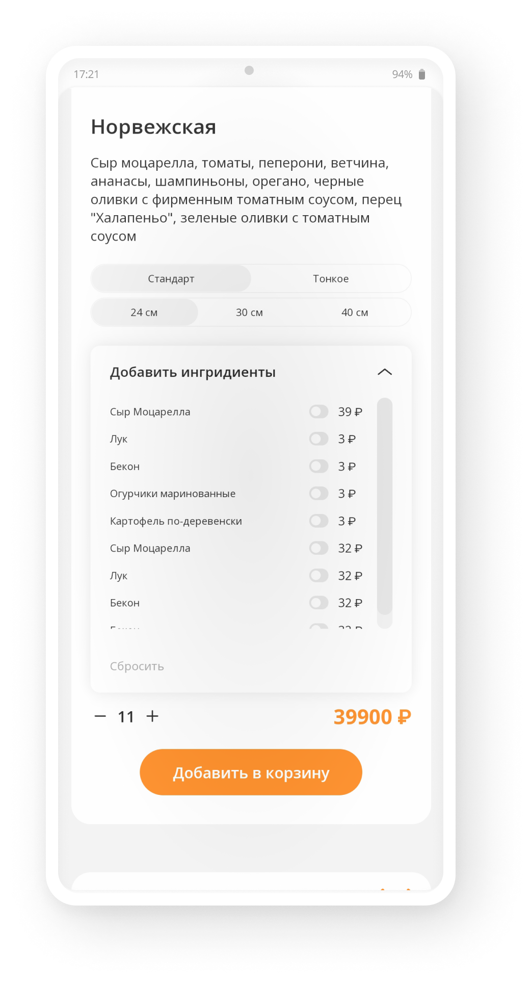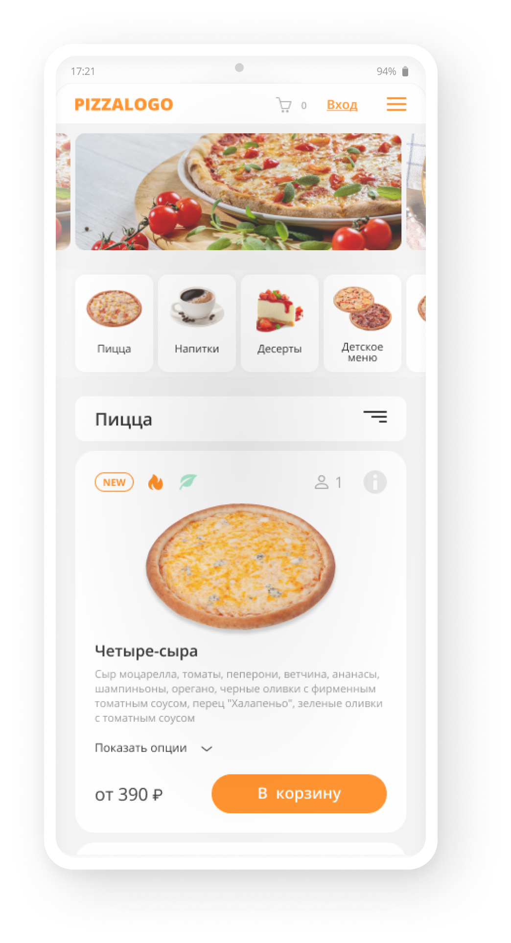 Задача — разработать макет интернет магазина, для использования сетью ресторанов быстрого питания. Проект должен стать универсальным шаблоном, подходящим для различных брендов, с простой навигацией. Ключевые особенности: каталог на главной странице, горизонтальное меню с фото-иконками товаров.
